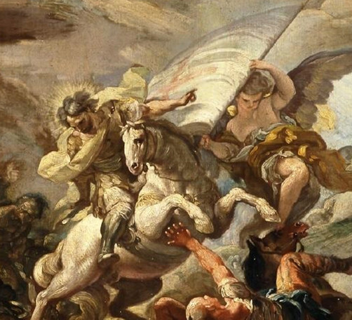 Comme des spectateurs, lorsqu’on regarde ces deux peintures on peut penser qu’il s’agit de peintures religieuses ou hagiographiques. C'est d'ailleurs sous cette catégorie que le musée les inventorie. Mais si on regarde avec attention, on verra plusieurs éléments qui nous permettent de les classer aussi comme une œuvre ayant une thématique militaire. Dans cet article, on va donc analyser cette question, en détaillant l’importance de l’équitation militaire et du cheval de guerre dans ces deux images.